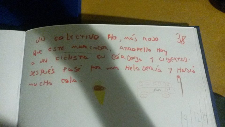 Inquietante nota que encontramos en un cuaderno de Chela.
