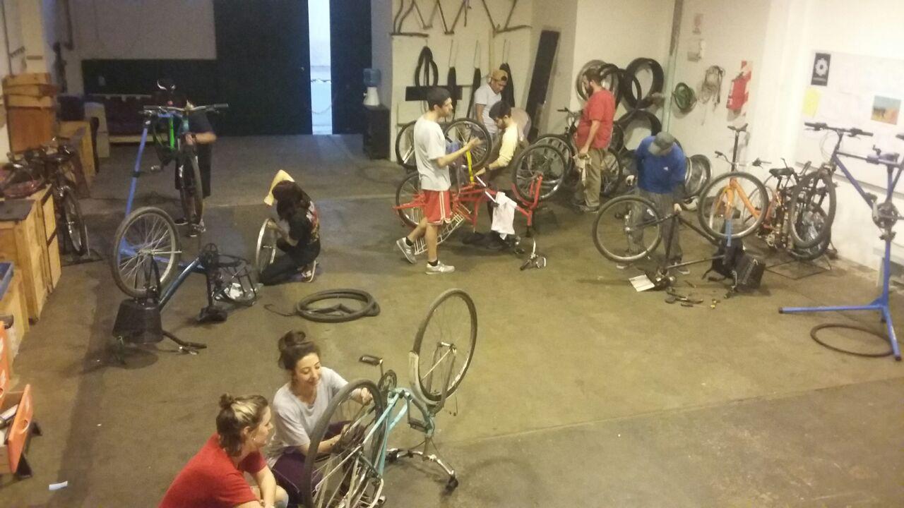 siempre esta abierto para compartir y conocer el espacio, si querés sumarte al espacio también es una opción, además de arreglar bicis, buscamos explorar la capacidad que esta nos brinda de transfomarnos desde otra forma de percibir la realidad y como expresarlo.