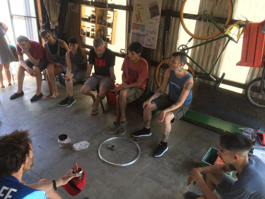 Invitamos a compartir, reparamos bicis colectivamente, nos ponemos, vemos, consultamos y lo sacamos adelante.