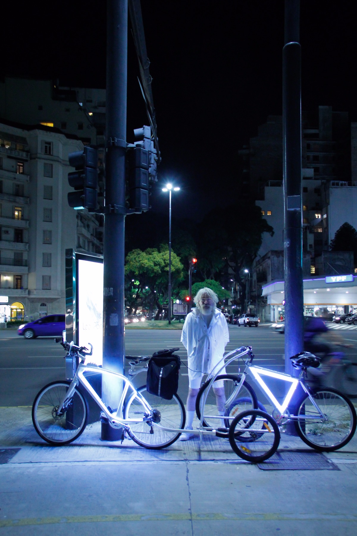 Entre la noche del martes y del miércoles, Fabian Wagmister, creador y director del proyecto, lleva pedaleados 152,6 km dentro de la ciudad Buenos Aires sobre su bicicleta blanca instrumentada con diferentes dispositivos y sensores.